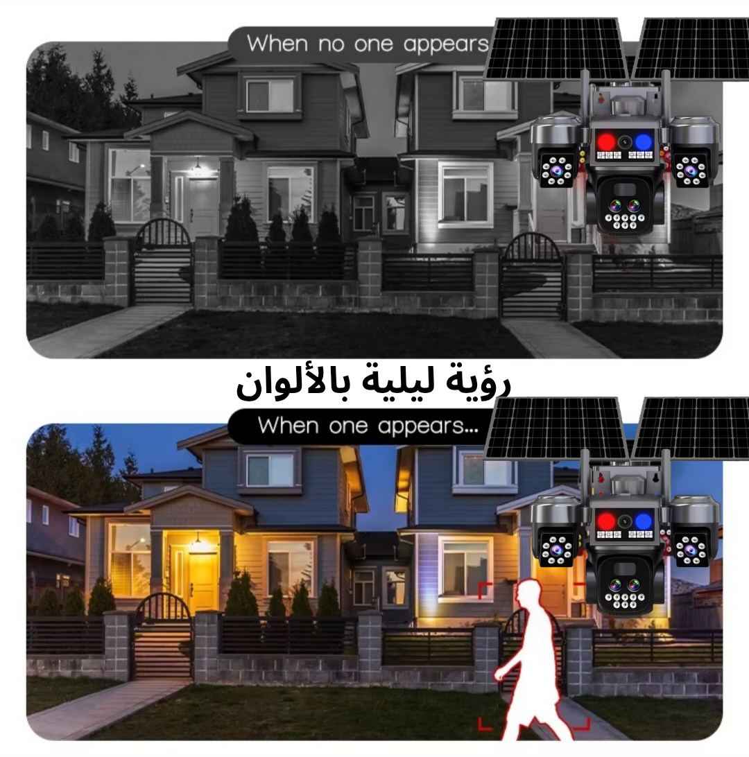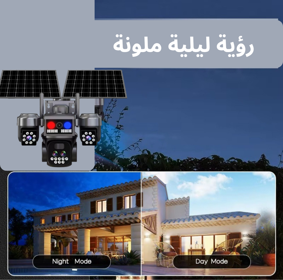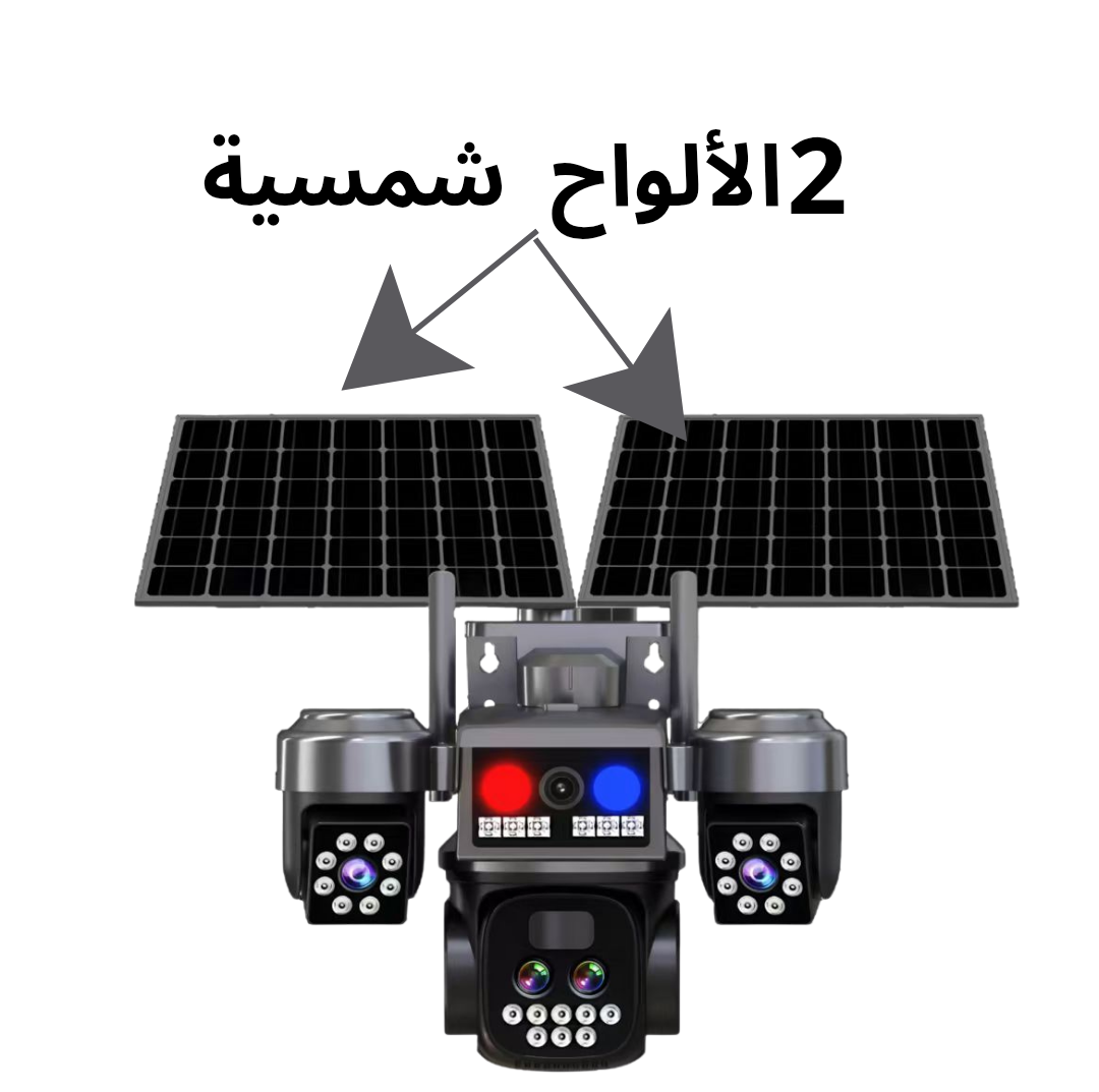 مزودة بـ 2 لوح شمسي عالي الكفاءة لضمان شحن مستمر للبطاريات وتشغيل الكاميرا طوال العام دون انقطاع.