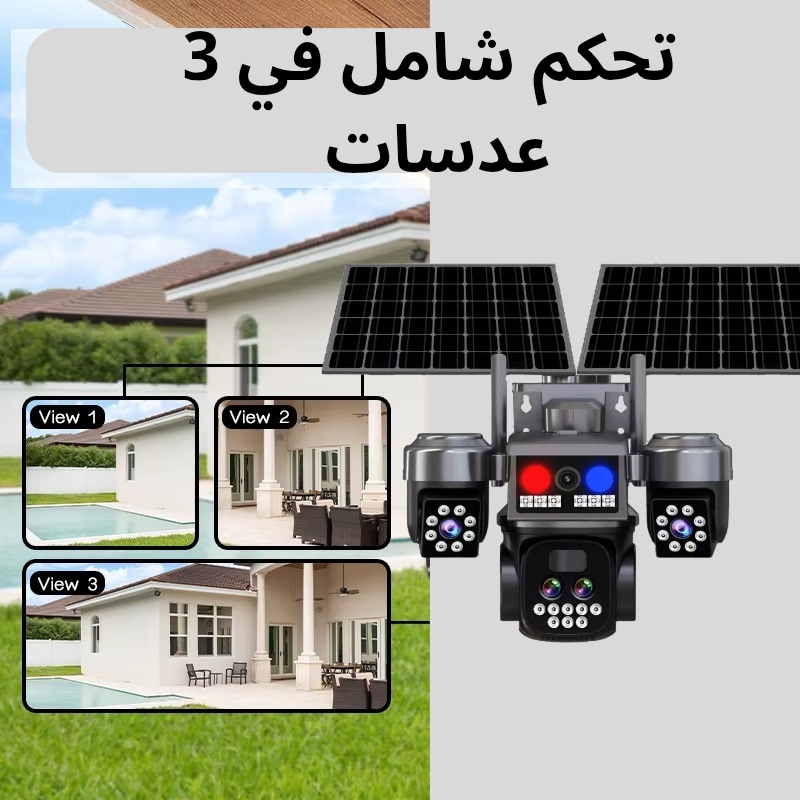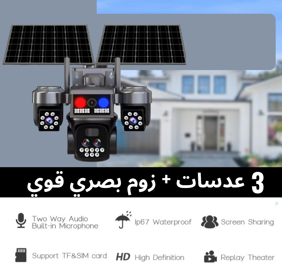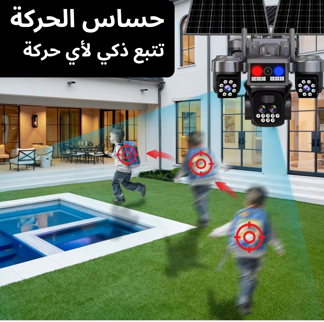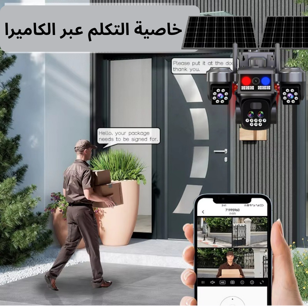 مزودة بـ 2 لوح شمسي عالي الكفاءة لضمان شحن مستمر للبطاريات وتشغيل الكاميرا طوال العام دون انقطاع.